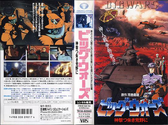 原作:荒巻義雄監督·絵コンテ:滝沢敏文脚本:小出一巳音乐:加藤みちあき---------------------------------------------70分钟的OVA,监督为之后监督了《七武士》改编TVA的泷泽敏文。本作改编自荒巻義雄的BIGWARS系列(ビッグウォーズシリーズ)中的一卷:「神鳴る永遠の回帰」ビッグウォーズ1「火星戦線異状なし」ビッグウォーズ2「真白き神々の降臨」ビッグウォーズ3「宇宙元年新創世記」ビッグウォーズ4「神撃つ朱い荒野に」ビッグウォーズ枝篇・火星戦記青葉の闘い「精霊荒野に咽きて」ビッグウォーズ枝篇・火星年代記2200年「帰らざる宇宙の詩」ビッグウォーズ外篇・スターゲイトFCT発進「猫戦士超D球計画」ポスト・ビッグウォーズ・スーパーダイソンボールPart1このシリーズは未完である。本編1~4の第一部「惑星篇」、捷号艦長ハイパー・マクドナルドの話のみ完結。第二部「銀河篇」、第三部「星雲篇」の構想はあるが未発表である(2008年現在)。なお、当初3巻の予定であった「惑星篇」は4巻になり、ずれ込んでいる。枝篇は火星の物語のみ。なお「神撃つ…」は本編の地球を脱出させるための護衛艦の話に接続。「精霊…」は火星開拓史&アンドロギュノス・シシンジケートの話である。火星のコロニーや月のルナシティーに関しては実際に建築物の設定を設計士に依頼したということである。外篇は本編に付随する物語。原本によれば、「枝編」「外編」の「編」は「篇」を使用している。